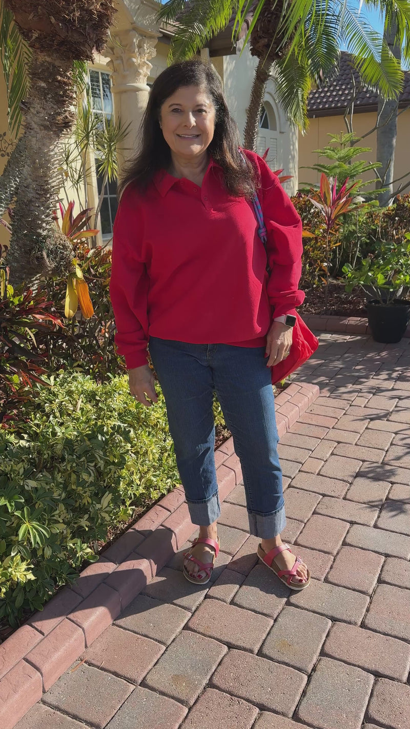 Oversized Collared Sweatshirt | Red